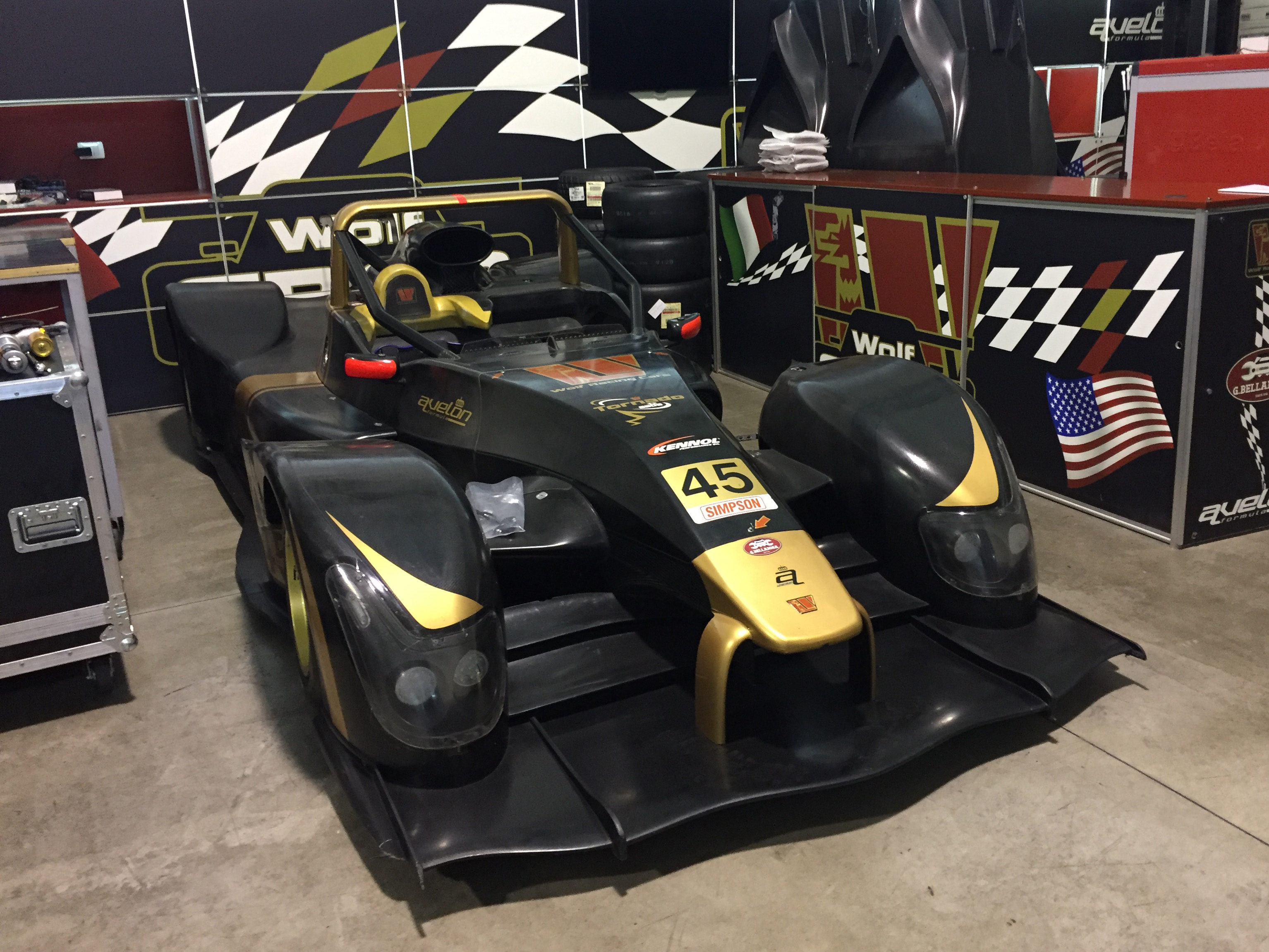 Box auto para Avelon Formula. Stand box permanente, completo con puertas abatibles para almacenar material, superficies de apoyo y fondo gráfico para