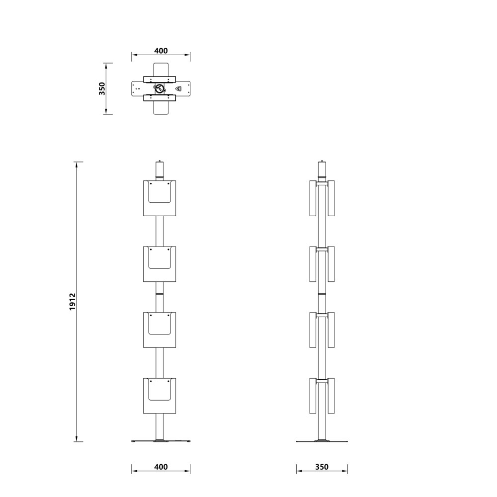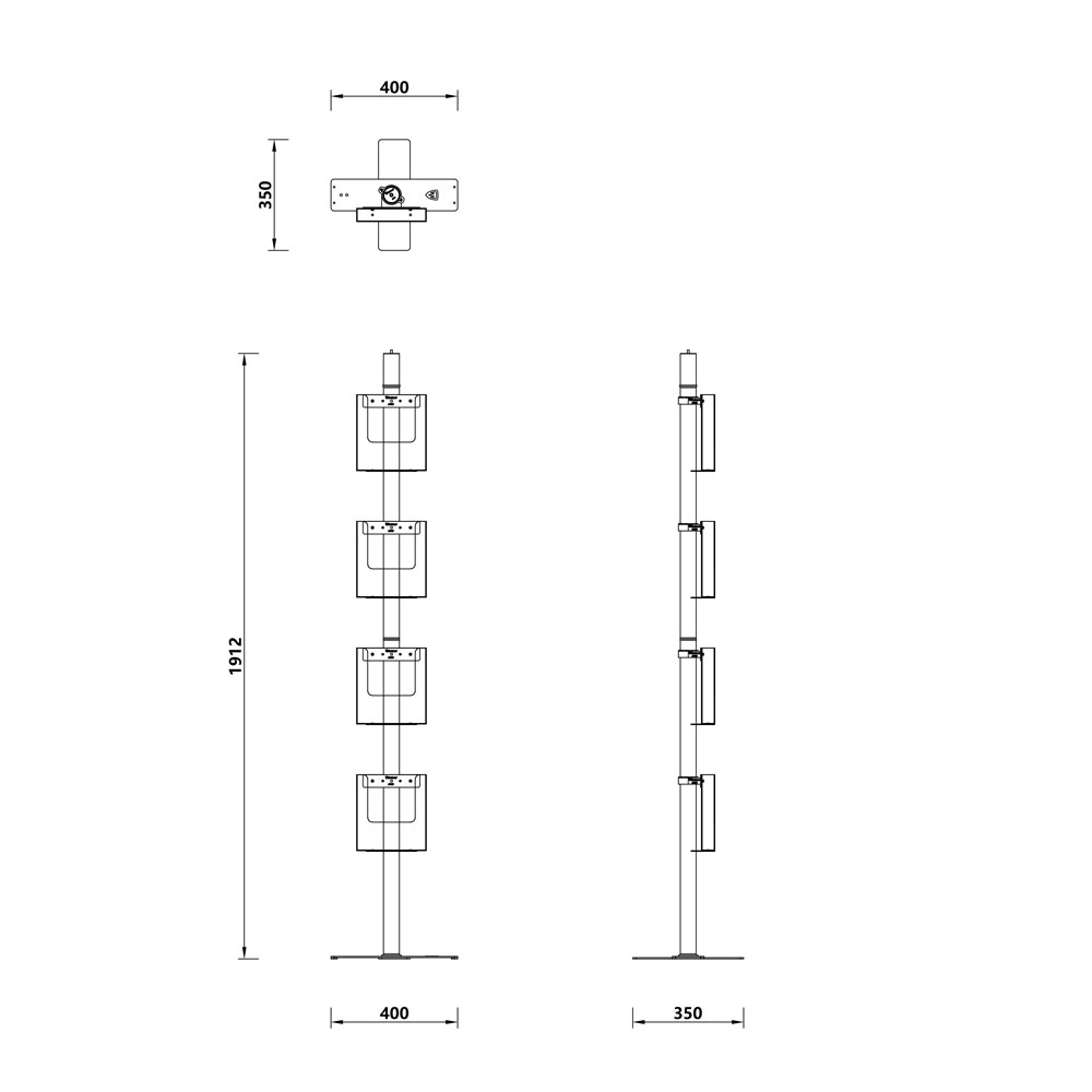 Hemos querido crear este soporte porta-folletos de estética sencilla y limpia, porque no teníamos en el catálogo un expositor multibolsillo de este tipo.