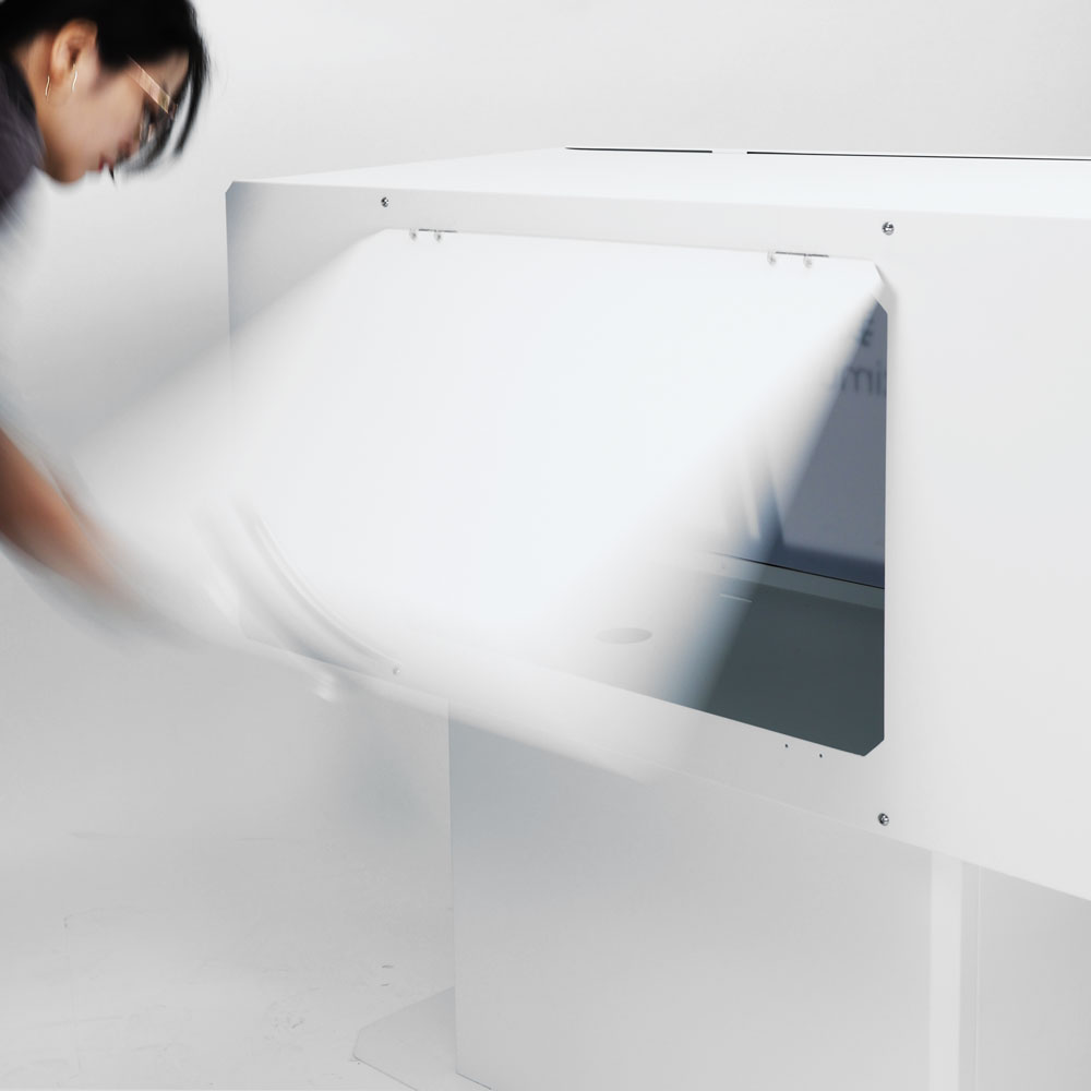 Desde hoy disponible también en la versión vitrina expositora. El frontal de hecho puede volverse transparente haciendo así que en el interior del mostrador se puedan alojar y exponer productos.